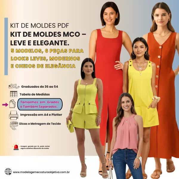 Os moldes estão prontos, testados e graduados — é só imprimir, cortar e costurar.