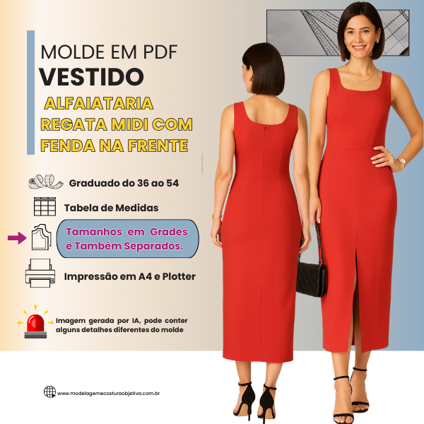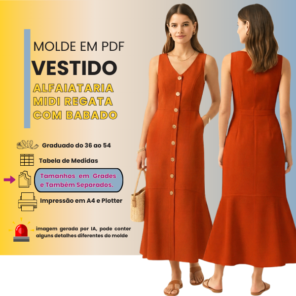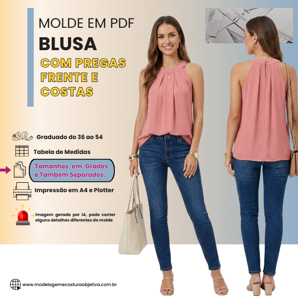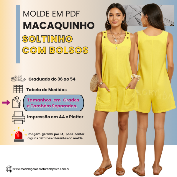 Você terá acesso aos moldes em PDF graduados do tamanho 36 ao 54.